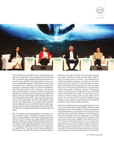 ile bilgi paylaşımında bulundu. Sayın Aydın’dan sonra otu- session. Mr. Uzel focused on sustainable milling practices