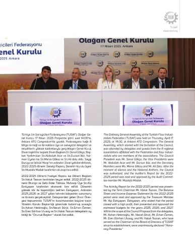 Türkiye Un Sanayicileri Federasyonu (TUSAF), Olağan Ge- The Ordinary General Assembly of the Turkish Flour Indust-