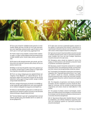 68 “Tarımsal Gözlem Uydu Ağı” gerçekleştirilmeli, tarımsal rural areas should be strengthened.