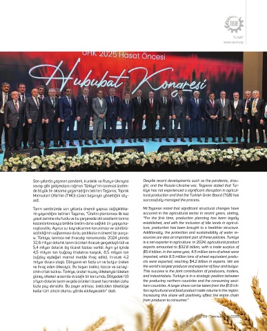 Mahsulleri Ofisi’nin (TMO) süreci başarıyla yönettiğini söy- tural production and that the Turkish Grain Board (TGB) has