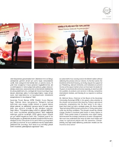 Sayın Mehmet Akıncı konuşmasında Türkiye’nin tarımsal the climatic and structural risks faced by Turkey’s agricultural