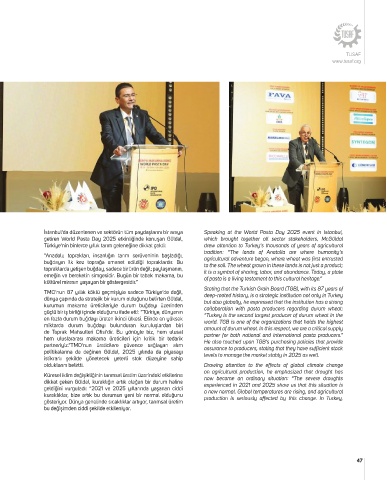 İstanbul’da düzenlenen ve sektörün tüm paydaşlarını bir araya Speaking at the World Pasta Day 2025 event in Istanbul,